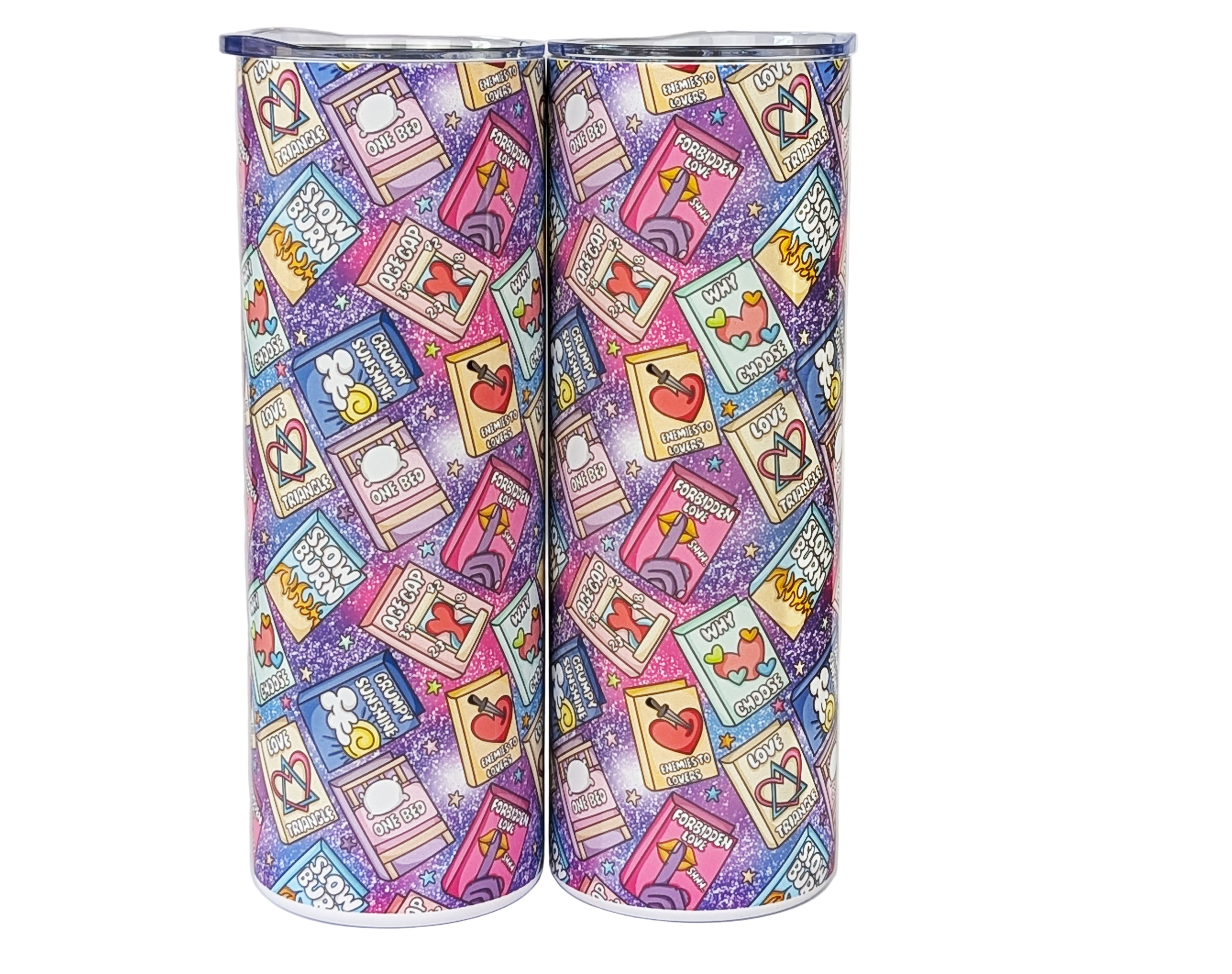 Slow burn, enemies-to-lovers, forbidden love… why choose when you can have them all? 💕 This 20oz stainless steel tumbler is wrapped in a vibrant, colorful design featuring all your favorite spicy romance tropes. With its secure sliding lid, it keeps your drinks hot (like your books) or cold (like your favorite plot twist). The perfect daily companion for smut readers who proudly wear their tropes on display.